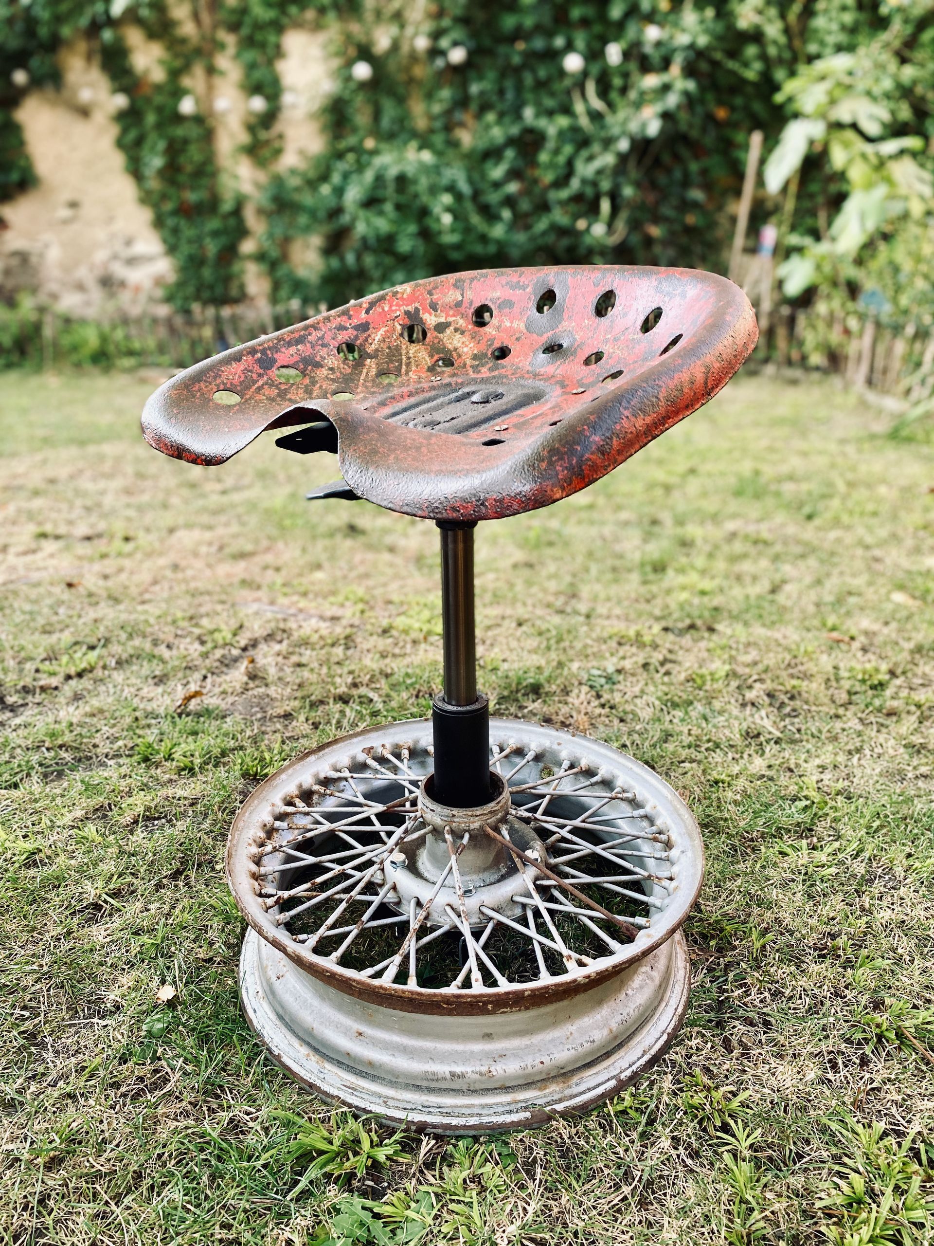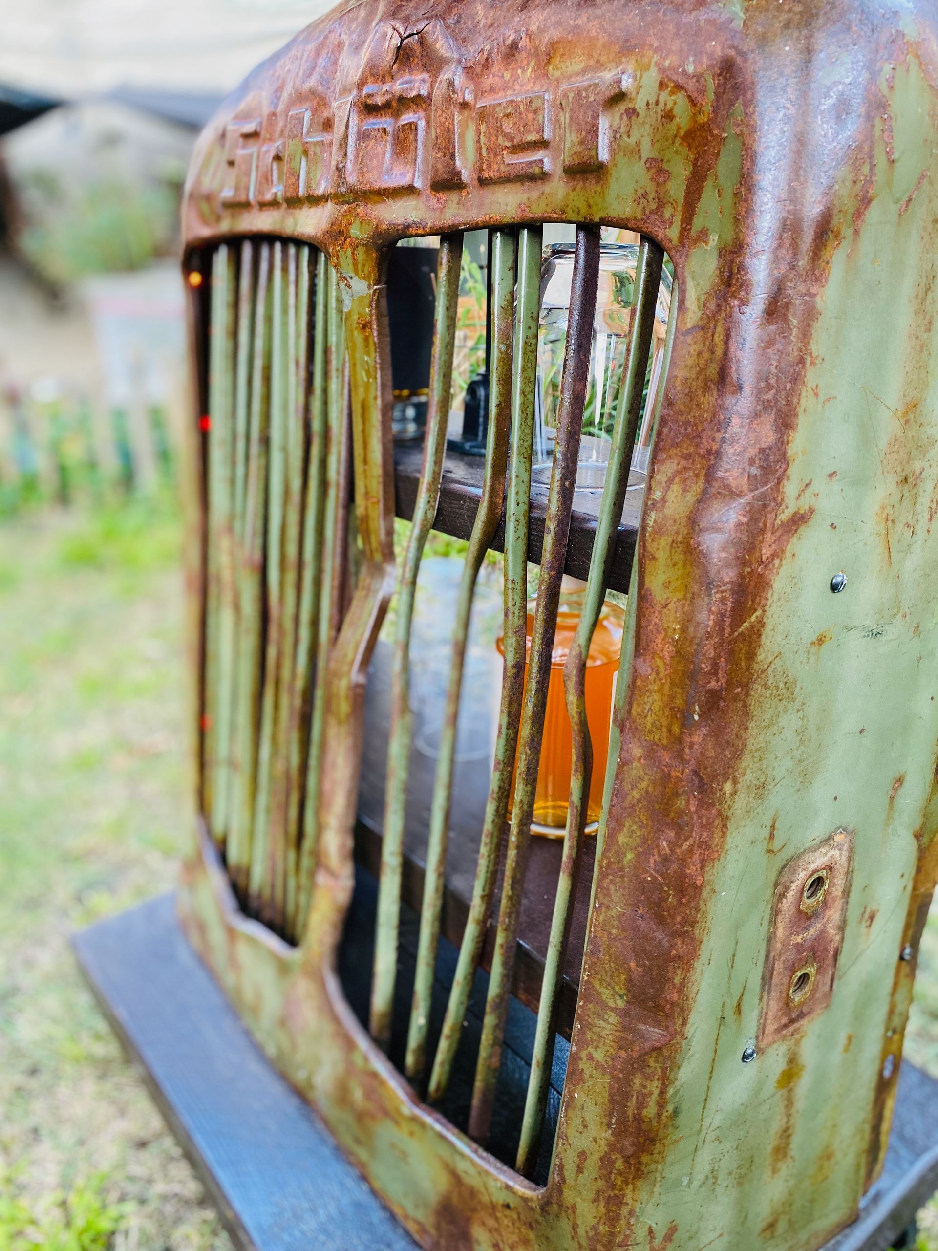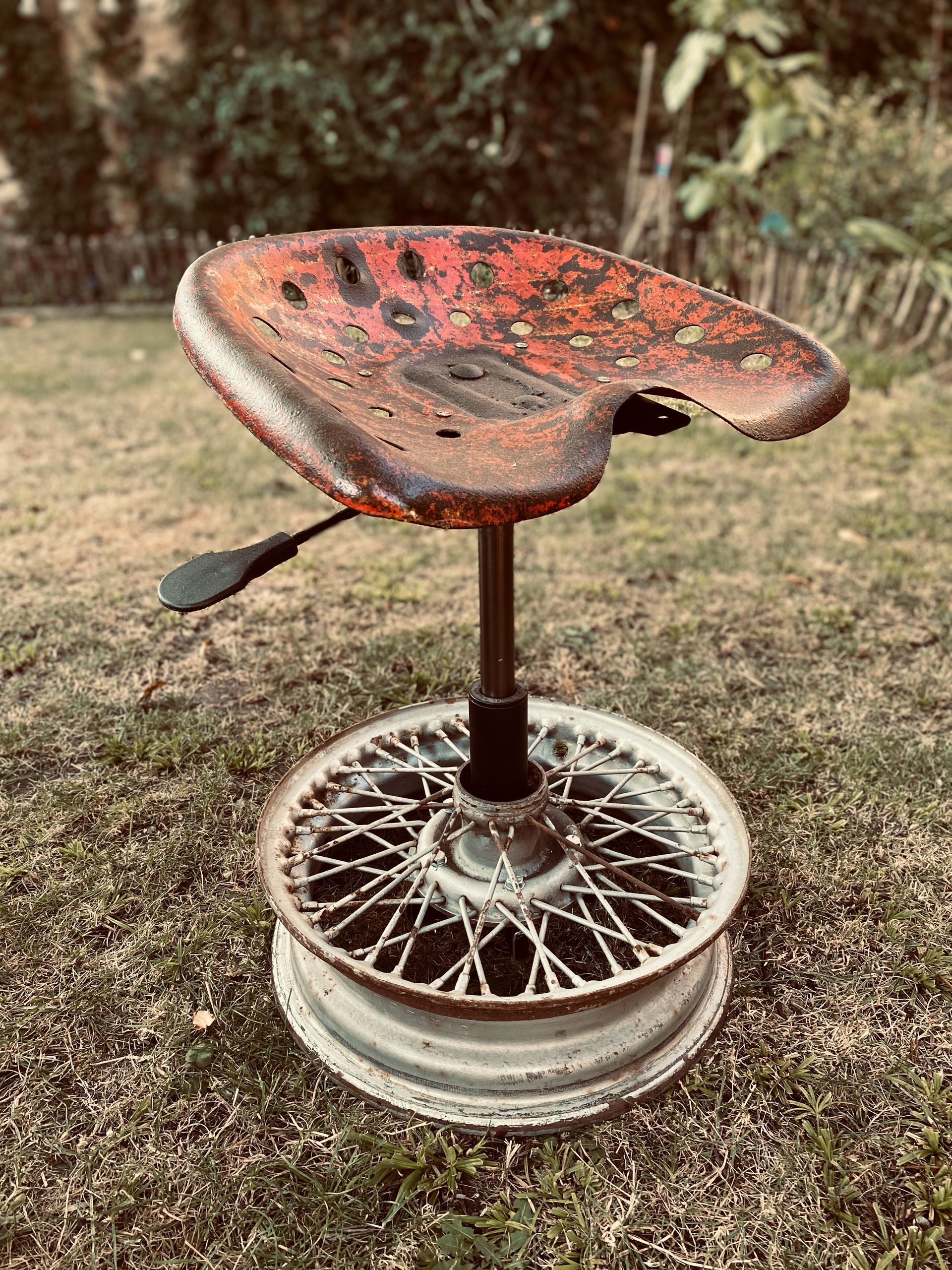 Bevorzugt verwende ich ausgediente Technikteile aus Metall und altes Holz. Die Spuren der Zeit hinterlassen ihre Geschichte auf dem Material und sollen nicht entfernt werden. Die Patina bleibt bewusst sichtbar und trägt zum Charakter bei.